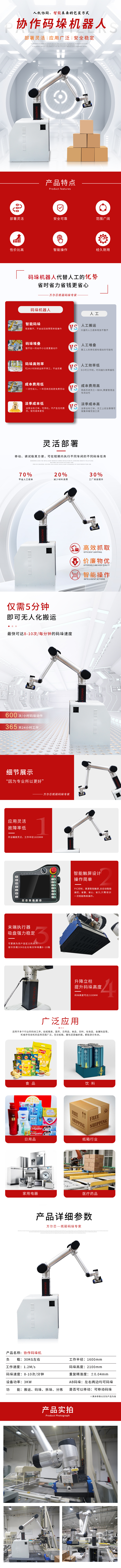 多领域应用:协作码垛机器人广泛应用于纸箱行业、医药行业、日用品行业、食品行业、饮料行业、化妆品行业、金属制品等多个领域的生产线上。